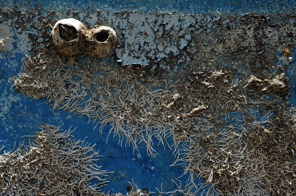 Заборављени чамац, некад потонуо, преврнут на морском дну и сам постаде део Посејдоновог царства, добивши нови живот. Другачије не би ни могло да се буде, јер у води је започето све. Одбачене ствари савременог живљења, срећом још увек успевају да се сједине са песком и да се на њима зачну нови минијатурни светови. И као у бајци, чамaц је кренуо лагано да нараста у морски гребен, добивши своје бројне и необичне станаре. Али сваки нови дан, другачији је од претходног и ништа није вечно и непроменљиво. Када га рибари угледаше, извукоше га на обалу, а. Зевс, Хелиос и Еол га уведоше у своју причу. Талог морског дна, песак и со су брзо спрани и одувани, али скамењени корали, рачићи и сасе остадоше на површини чамца као крљушт, испреплитани са старом плавом бојом и ранама од рђе, које никако да зацеле. Ту као пред спавање, када је најинтересантније, престаје прича, чекајућу сутрадан да се настави и сви претпостављају шта ће да се деси, али не баш сигурно…