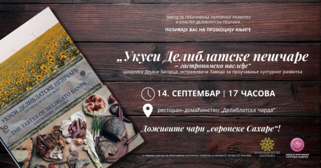 После успешних и запажених књига „Укуси Ђердапа“, „Укуси Старе планине“ и „Укуси Златибора“ којима је у нашој и светској јавности представљена нематеријална културна баштина заштићених природних добара и најлепших делова Србије, у издању Завода за проучавање културног развитка (Запрокула) и Народног музеја из Панчева, објављена је и књига о културно-историјском и гастрономском наслеђу највеће пустиње у Европи – Делиблатске пешчаре.