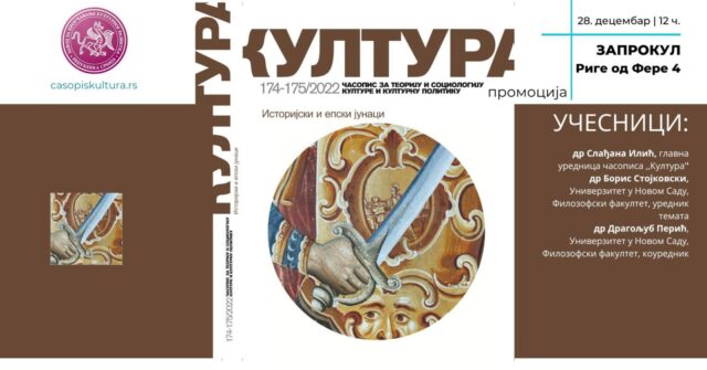 New 174-175. issue of the magazine Kultura, which has as its theme Historical and epic heroes between historiography and literary folklore tradition, will be promoted at the Institute (Zaprokul) on Wednesday, December 28 at 12:00.