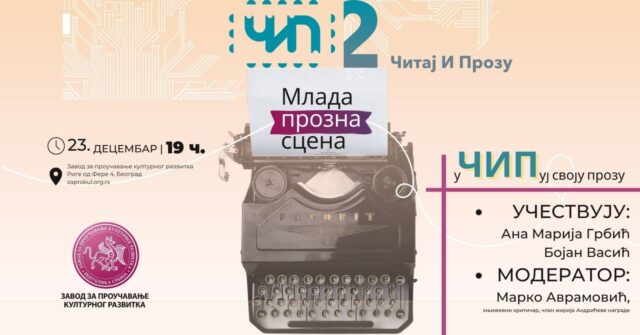 The new ČIP 2, another evening of “Reading and Prose” will be held on Friday, December 23 at 7 p.m. in the Gallery of the Institute (Zaprokul). After the extremely successful first cycle of public reading forums in Zaprokul, where the audience was introduced to contemporary young Serbian poets, the second cycle of ČIP forums presents us with the contemporary young prose scene. Unlike young poets, who often have the opportunity to present themselves to the public at public readings, group prose readings, especially by young authors, are much rarer. Perhaps this is the reason for one of the paradoxes of the contemporary Serbian literary scene.