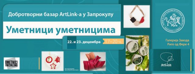 Уметничка асоцијација ArtLink и Завод за проучавање културног развитка организују продајну ArtLink-ову изложбу радова примењене уметности у Галерији Завода 22. и 23. децембра од 17 до 20 часова у улици Риге од Фере у Београду. На изложби ће бити доступни радови из различитих области примењеног стваралаштва као што су керамика, текстил, кожа, накит, минијатура, фотографија, графика… Новогодишњи базар део је ArtLink-ове хуманитарне иницијативе Уметници уметницима, чији је циљ подршка младим музичким талентима.