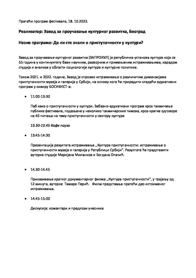 Пратећи програм фестивала – ЗАПРОКУЛ