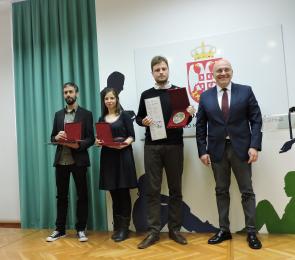 Dobitnicima su uručene diplome i plakete sa likom Novice Tadića, koje su uradili studenti Fakulteta primenjenih umetnosti.