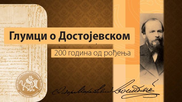 U susret velikom jubileju – 200 godina od rođenja Dostojevskog, Zavod za proučavanje kulturnog razvitka (Zaprokul) organizuje umetničku tribinu GLUMCI O DOSTOJEVSKOM – Biti tu za sve i za svakog u subotu, 11. decembra u 8 uveče u Galeriji Zavoda, u ulici Rige od Fere 4 u Beogradu.