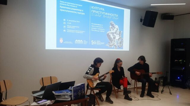 Juče je povodom 3. decembra, Međunarodnog dana osoba sa invaliditetom, Zavod za proučavanje kulturnog razvitka (Zaprokul) u saradnji sa Muzejom savremene umetnosti, predstavio rezultate po prvi put sprovedenog istraživanja „Kultura pristupačnosti: istraživanje o pristupačnosti muzeja i galerija u Republici Srbiji“, uz simboličnu pesmu „Dodirni me“ koju su izveli mladi umetnici, učenici Škole za učenike oštećenog vida ,,Veljko Ramadonović“.