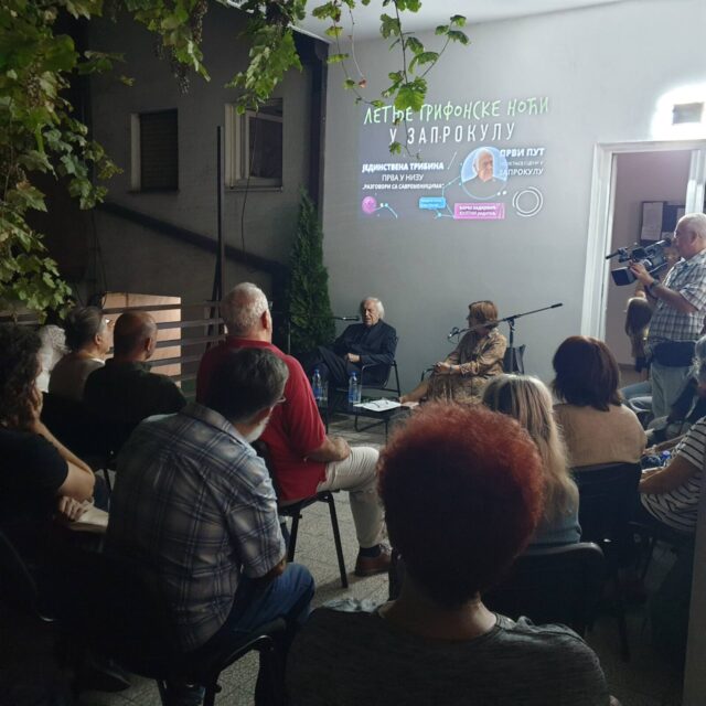 Na prepunoj terasi Zavoda za proučavanje kulturnog razvitka (Zaprokul) govorio je legendarni sineasta Đorđe Kadijević, dotakavši se svog odrastanja, kulturne klime posleratne Jugoslavije  i poriva koji su ga vodili kroz život i karijeru.