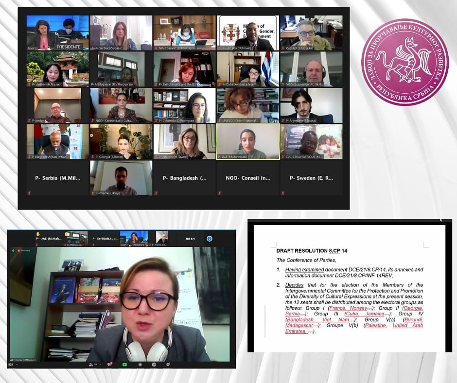 Република Србија је данас, на 8. заседању Конференције чланица, постала члан Међувладиног комитета Конвенције о заштити и унапређењу разноликости културних израза (Унеско 2005) као представник друге електоралне групе.
